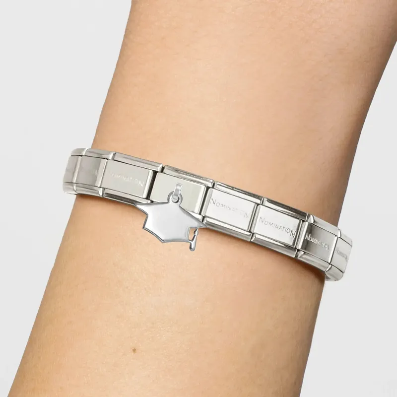 Original Nomination Composable Classic Pendant Link for Composable bracelet in stainless steel with sterling silver Star symbol with White Cubic Zirconia and sterling silver Star pendant with White Cubic Zirconia. Add this precious Link to your bracelet and dream about twinkling summer night skies. This LInk is the perfect gift for anyone who has lots of wishes to make on falling stars.